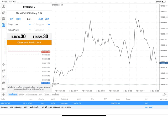 การเทรดเงินดิจิตอลบิทคอยน์บนแอปเล่นหุ้น MT4