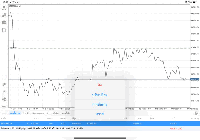 -14.93$ เปิดไว้ หรือ ปิดการซื้อขายครั้งนี้เลย ถ้าเปิดไว้ ราคาเปลี่ยนแปลง ยังส่งผลต่อผลบวกลบ ผลการลงทุนอาจเปลี่ยนแปลงไปบวกไปลบไปลบไปบวก