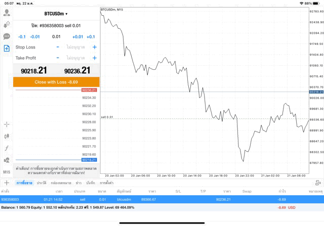 คลิ๊กปุ่มสีส้ม ปิดสถานะ หากยังไม่ปิดสถานะ ระหว่างนี้ราคายังเปลี่ยนแปลงอาจส่งผลต่อกำไรหรือขาดทุน