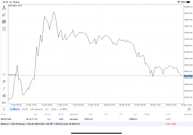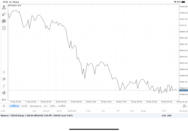 เทรดได้แม้วันเสาร์อาทิตย์ บิทคอยน์เทรดได้ทุกวันไม่เว้นวันหยุด กลางวัน หรือ กลางคืน ก็เทรดได้ ซื้อขายเก็งกำไรบิทคอยน์ 24 ช.ม.ไม่เว้นวันหยุด การเก็งกำไรราคาเงินบิทคอยน์ ทดลองเล่นฟรี เก็งกำไรบิทคอยน์(เงินดิจิตอล Bitcoin หรือ BTC)ซื้อขายได้ตลอดทั้งวันทั้งคืนไม่เว้นวันหยุด ทดลองซื้อขายเก็งกำไรบิทคอยน์บนแอปเล่นหุ้น MT4 หรือ Meta Trader 4 ฟรี *ซื้อขายบิทคอยน์ ได้ทุกวัน ตลอด 24 ช.ม. ไม่เว้นวันหยุด