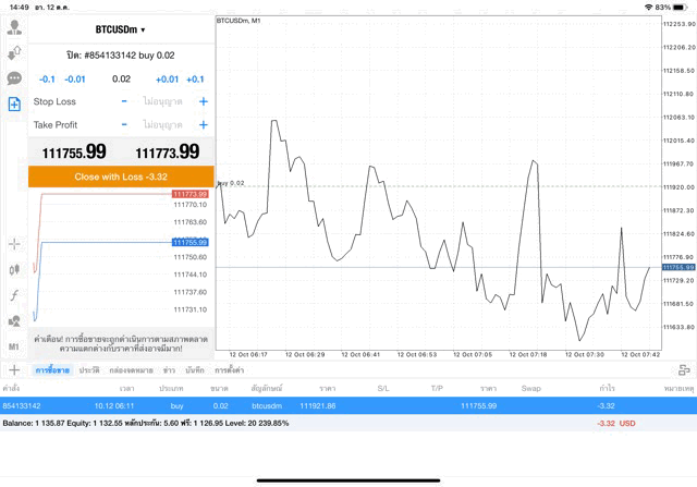 การเทรดเงินดิจิตอลบิทคอยน์บนแอปเล่นหุ้น MT4 หรือ Meta Trader 4