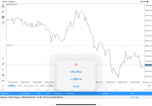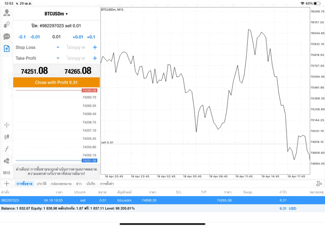 การเก็งกำไรราคาเงินบิทคอยน์ (เงินดิจิตอล Bitcoin หรือ BTC) ทดลองเล่นฟรี เก็งกำไรบิทคอยน์ ทดลองซื้อขายเก็งกำไรบิทคอยน์บนแอปเล่นหุ้น MT4 หรือ Meta Trader 4 ฟรี *ซื้อขายบิทคอยน์ ได้ทุกวัน ตลอด 24 ช.ม. ไม่เว้นวันหยุด