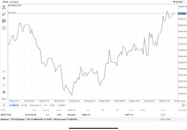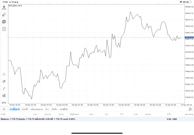 เช้าสายบ่ายเย็นกลางค่ำกลางคืนก็เทรดได้ การเก็งกำไรราคาเงินบิทคอยน์ (เงินดิจิตอล Bitcoin หรือ BTC) ทดลองเล่นฟรี ทดลองซื้อขายเก็งกำไรบิทคอยน์บนแอปเล่นหุ้น MT4 หรือ Meta Trader 4 ฟรี *ซื้อขายบิทคอยน์ ได้ทุกวัน ตลอด 24 ช.ม. ไม่เว้นวันหยุด