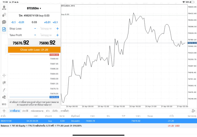 คลิ๊กปุ่มสีส้ม ปิดสถานะ หากยังไม่ปิดสถานะ ระหว่างนี้ราคายังเปลี่ยนแปลงอาจส่งผลต่อกำไรหรือขาดทุน