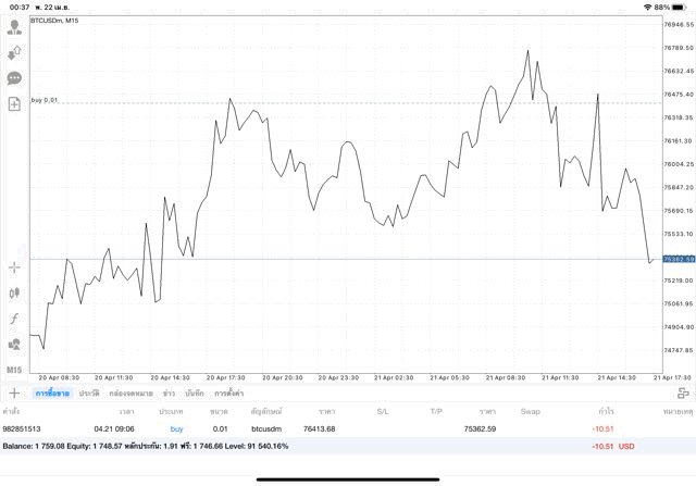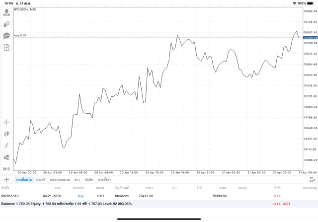 ทดลองเล่นฟรี การเก็งกำไรราคาเงินบิทคอยน์ (เงินดิจิตอล Bitcoin หรือ BTC) เก็งกำไรบิทคอยน์ ทดลองซื้อขายเก็งกำไรบิทคอยน์บนแอปเล่นหุ้น MT4 หรือ Meta Trader 4 ฟรี *ซื้อขายบิทคอยน์ ได้ทุกวัน ตลอด 24 ช.ม. ไม่เว้นวันหยุด