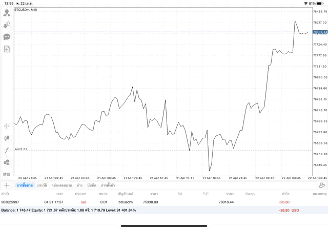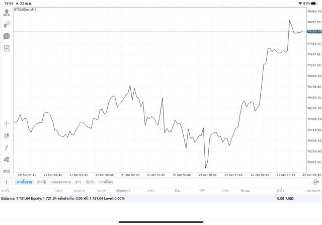 ทดลองเล่นฟรี การเก็งกำไรราคาเงินบิทคอยน์ (เงินดิจิตอล Bitcoin หรือ BTC) ทดลองซื้อขายเก็งกำไรบิทคอยน์บนแอปเล่นหุ้น MT4 หรือ Meta Trader 4 ฟรี *ซื้อขายบิทคอยน์ ได้ทุกวัน ตลอด 24 ช.ม. ไม่เว้นวันหยุด