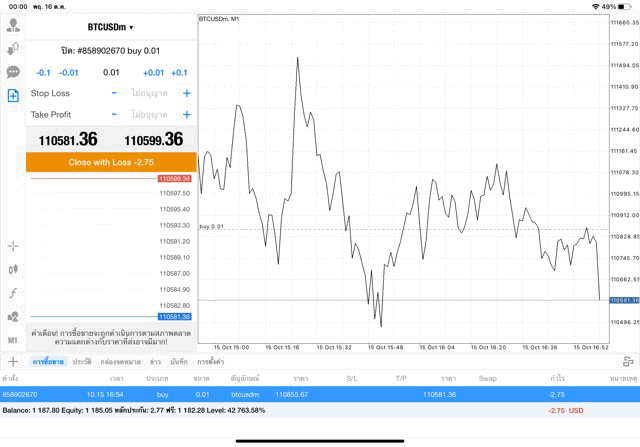 คลิ๊กปุ่มสีส้ม ปิดสถานะ หากยังไม่ปิดสถานะ ระหว่างนี้ราคายังเปลี่ยนแปลงอาจส่งผลต่อกำไรหรือขาดทุน