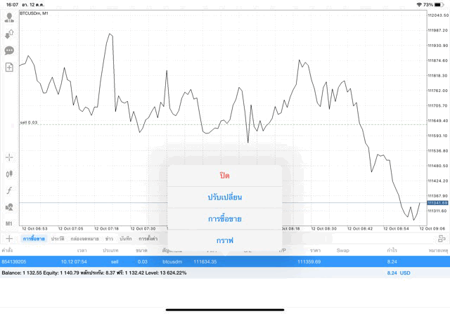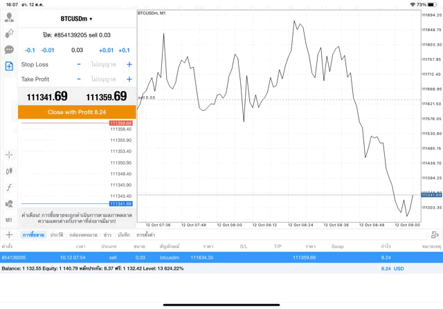 การเทรดเงินดิจิตอลบิทคอยน์บนแอปเล่นหุ้น MT4