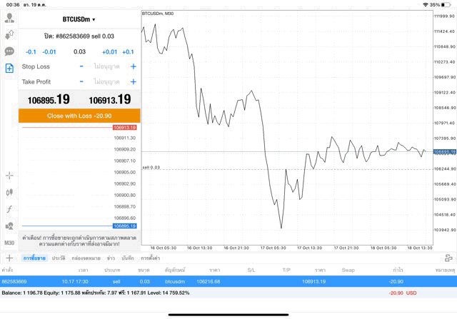การฝากเงินเข้าไปทำการซื้อขายจริง การลงทุน lot สูงๆ นักลงทุนอาจขาดทุนเงินหมดบัญชีเทรดในช่วงพริบตา ไม่ควรลงทุนเกิน 10 % ของเงินทุน Balance การลงทุนมีความเสี่ยงสูงอาจขาดทุนเงินหมดบัญชี