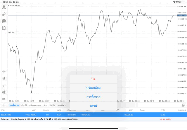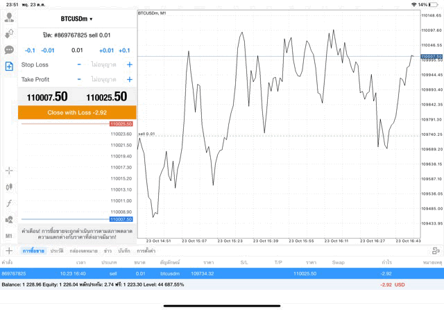 การฝากเงินเข้าไปทำการซื้อขายจริง การลงทุน lot สูงๆ นักลงทุนอาจขาดทุนเงินหมดบัญชีเทรดในช่วงพริบตา ไม่ควรลงทุนเกิน 10 % ของเงินทุน Balance การลงทุนมีความเสี่ยงสูงอาจขาดทุนเงินหมดบัญชี