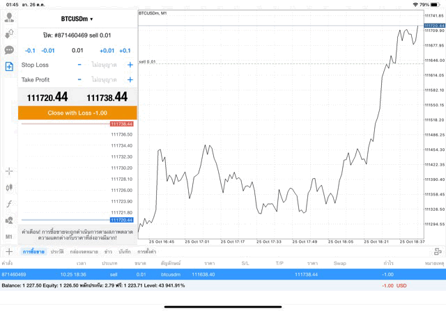 การฝากเงินเข้าไปทำการซื้อขายจริง การลงทุน lot สูงๆ นักลงทุนอาจขาดทุนเงินหมดบัญชีเทรดในช่วงพริบตา ไม่ควรลงทุนเกิน 10 % ของเงินทุน Balance การลงทุนมีความเสี่ยงสูงอาจขาดทุนเงินหมดบัญชี
