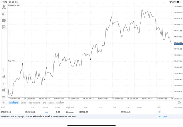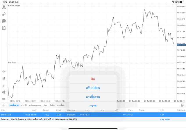 ทดลองเล่นเงินดิจิตอลบิทคอยน์บนแอปเล่นหุ้น MT4 หรือ Meta Trader 4 ได้ทุกวันตลอด 24 ช.ม. ไม่เว้นวันหยุด