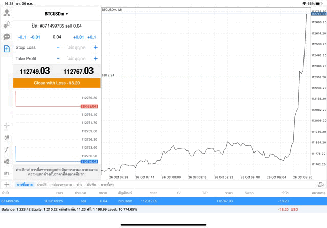 การฝากเงินเข้าไปทำการซื้อขายจริง การลงทุน lot สูงๆ นักลงทุนอาจขาดทุนเงินหมดบัญชีเทรดในช่วงพริบตา ไม่ควรลงทุนเกิน 10 % ของเงินทุน Balance การลงทุนมีความเสี่ยงสูงอาจขาดทุนเงินหมดบัญชี