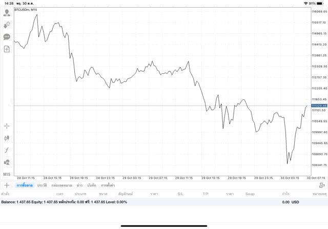 หาเงินออนเน็ต ทดลองเล่นเงินดิจิตอลบิทคอยน์บนแอปเล่นหุ้น MT4 หรือ Meta Trader 4 บิทคอยน์ซื้อขายได้ตลอด 24 ช.ม.ไม่เว้นวันหยุด