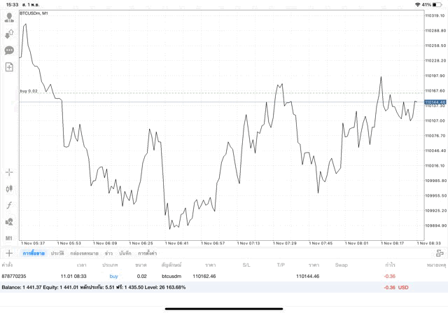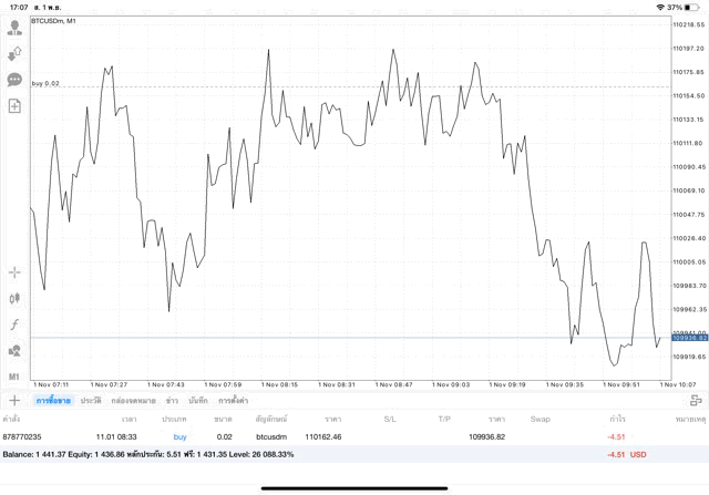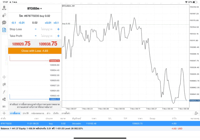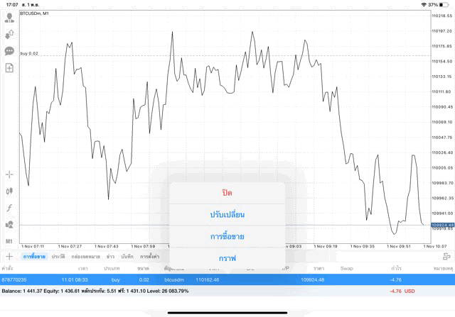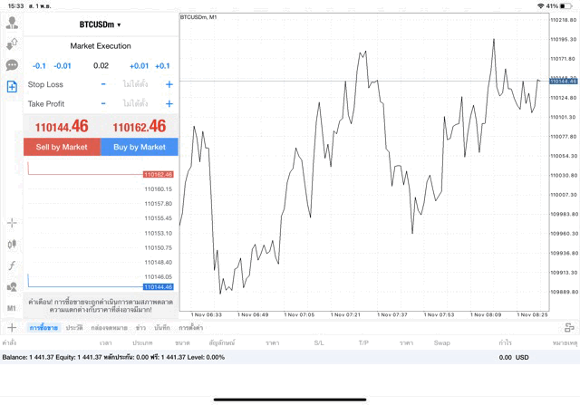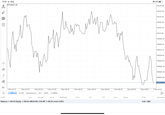 ทดลองเก็งกำไรเงินดิจิตอลบิทคอยน์บนแอปเล่นหุ้น MT4 หรือ Meta Trader 4 ซื้อขายได้ทุกวัน ไม่เว้นวันหยุด ตลอด 24 ช.ม.ซื้อขายได้ไม่จำกัดจำนวนครั้ง
