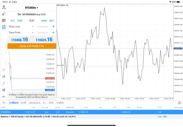 คลิ๊กปุ่มสีส้ม ปิดสถานะ หากยังไม่ปิดสถานะ ระหว่างนี้ราคายังเปลี่ยนแปลงอาจส่งผลต่อกำไรหรือขาดทุน