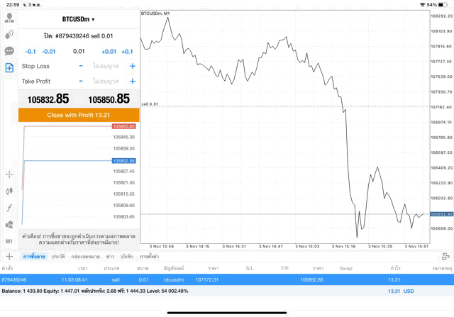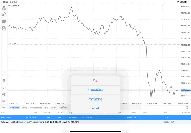 คลิ๊กปุ่มสีส้ม ปิดสถานะ หากยังไม่ปิดสถานะ ระหว่างนี้ราคายังเปลี่ยนแปลงอาจส่งผลต่อกำไรหรือขาดทุน