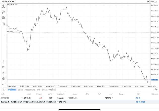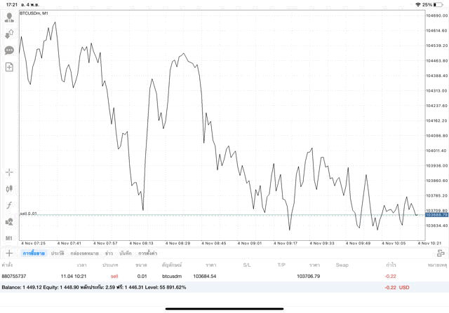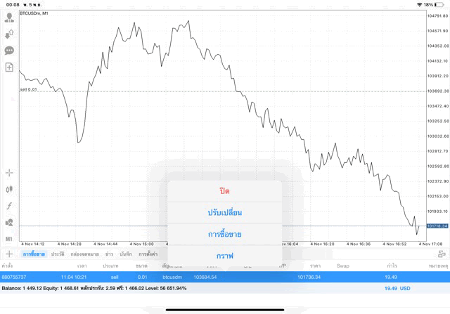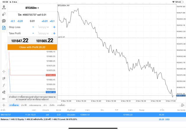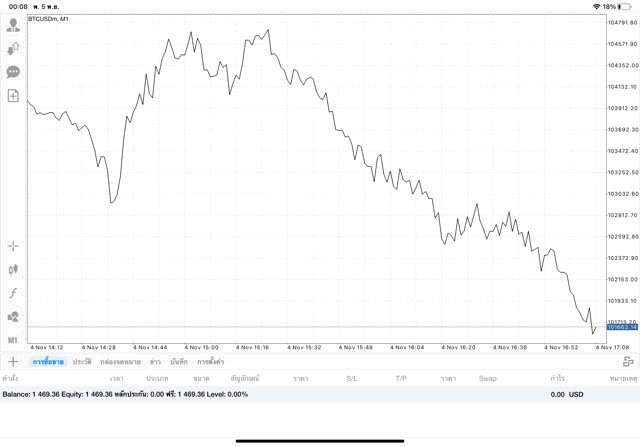 เล่นบิทคอยน์หาเงินในเน็ต ทดลองเก็งกำไรเงินดิจิตอลบิทคอยน์บนแอปเล่นหุ้น MT4 หรือ Meta Trader 4 ซื้อขายเงินดิจิตอลบิทคอยน์ได้ ตลอด 24 ช.ม. ไม่เว้นวันหยุด