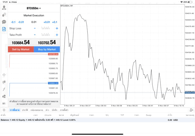 การฝากเงินเข้าไปทำการซื้อขายจริง การลงทุน lot สูงๆ นักลงทุนอาจขาดทุนเงินหมดบัญชีเทรดในช่วงพริบตา ไม่ควรลงทุนเกิน 10 % ของเงินทุน Balance การลงทุนมีความเสี่ยงสูงอาจขาดทุนเงินหมดบัญชี