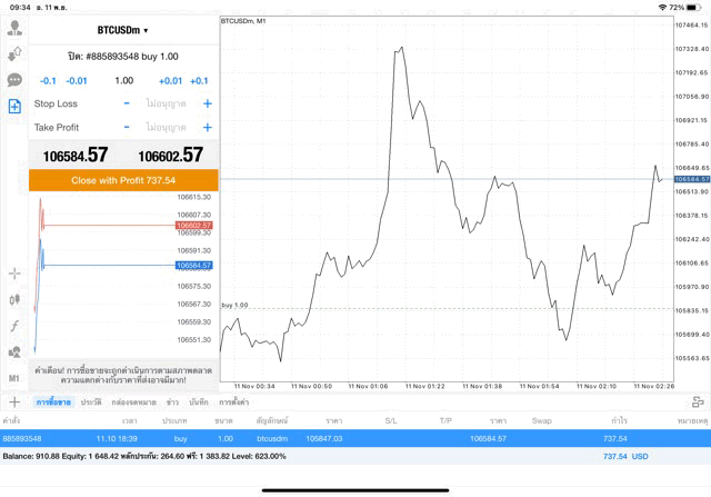 การฝากเงินเข้าไปทำการซื้อขายจริง การลงทุน lot สูงๆ นักลงทุนอาจขาดทุนเงินหมดบัญชีเทรดในช่วงพริบตา หากลงทุนไม่ควรลงทุนเกิน 10 % ของเงินทุน Balance การลงทุนมีความเสี่ยงสูงอาจขาดทุนเงินหมดบัญชี