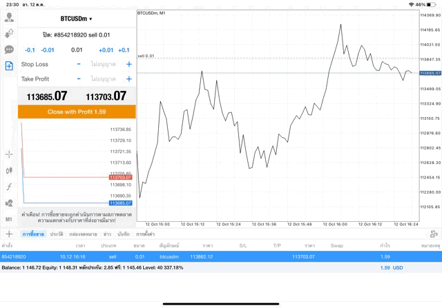 การเทรดเงินดิจิตอลบิทคอยน์บนแอปเล่นหุ้น MT4 หรือ Meta Trader 4