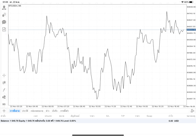 หากนักลงทุนหา BTCUSD ไม่เจอ คลิ๊กปุ่มลูกศรขึ้นลงบนแผงเมนูด้านข้าง เมื่อแผงรายชื่อหุ้นปรากฎ คลิ๊กปุ่ม + เหนือแผงรายชื่อหุ้น เลือก โฟลเดอร์ Crypto เพิ่ม BTCUSD เข้ามา เมื่อ BTCUSD มาอยู่บนแผงรายชื่อหุ้นแล้ว คลิ๊กค้างบน BTCUSD แล้ว เปิดกราฟ วิเคราะห์ราคาจากกราฟราคาบิทคอยน์ แล้วเริ่มซื้อขาย เปิดหน้าต่างส่งคำสั่งซื้อขาย คลิ๊กปุ่มเอกสาร + บนแผงเมนูด้านข้าง เมื่อหน้าต่างส่งคำสั่งซื้อขายปรากฎ