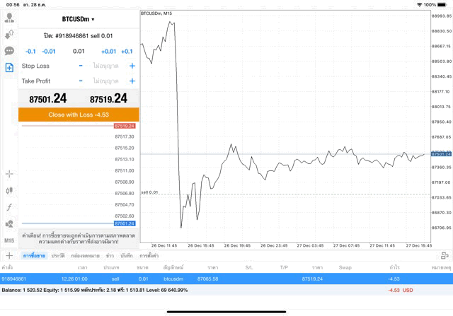 คลิ๊กปุ่มสีส้ม ปิดสถานะ หากยังไม่ปิดสถานะ ระหว่างนี้ราคายังเปลี่ยนแปลงอาจส่งผลต่อกำไรหรือขาดทุน